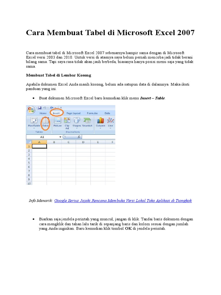 Cara Membuat Tabel Microsoft Office Excel 2007. Tutorial belajar cara mudah dan cepat bagi pemula membuat tabel dan grafik di microsoft office excel 2007, yg sangat berguna bagi pelajar atau siapapun yg. Tapi ada kalanya dalam membuat sebuah tabel bagi seseorang yang belum terbiasa menggunakan excel ini menemukan kesalahan dalam proses membuatnya.