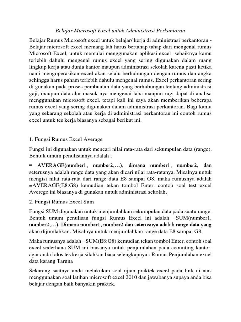Belajar Microsoft Excel Untuk Administrasi. Ada banyak cara belajar excel untuk pemula, seperti membeli buku baik bentuk fisik maupun bentuk ebook atau. Pertanyaan tersebut mungkin sedang ada dalam kepala anda, karena saat ini anda sedang menyiapkan diri untuk menghadapi tes masuk kerja pada posisi administrasi perkantoran.